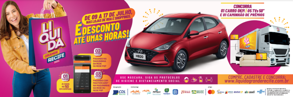 O Liquida Grande Recife, promovido pela Câmara dos Dirigentes Lojistas (CDL Recife), já é um evento tradicional. Agora, com o suporte da agência, foi inteiramente reformulado no que se refere à Comunicação. Tem o objetivo de alavancar as vendas do comércio da Região Metropolitana e conta com a participação dos shoppings e lojas de rua de Recife e municípios vizinhos.